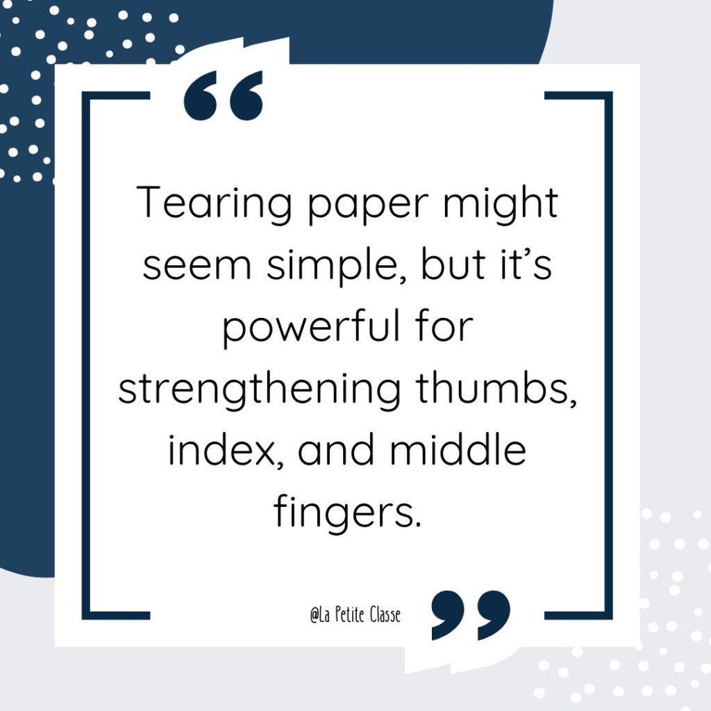 Tearing paper might seem simple, but it’s powerful for strengthening thumbs, index, and middle fingers. Have students create pumpkins, leaves, or acorns by tearing and gluing coloured paper. Bonus: it’s mostly mess-free and perfect for autumn art displays.