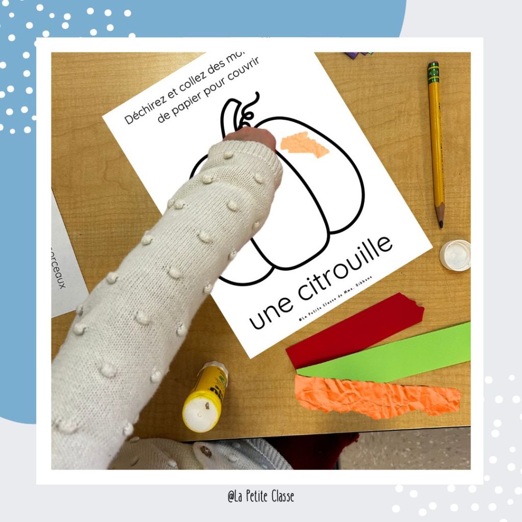 That’s exactly why I created my Fine Motor Halloween Vocabulary Bundle. It’s packed with simple, engaging activities that get kids cutting, tracing, pinching, and colouring—while also practicing seasonal vocabulary in English and French.