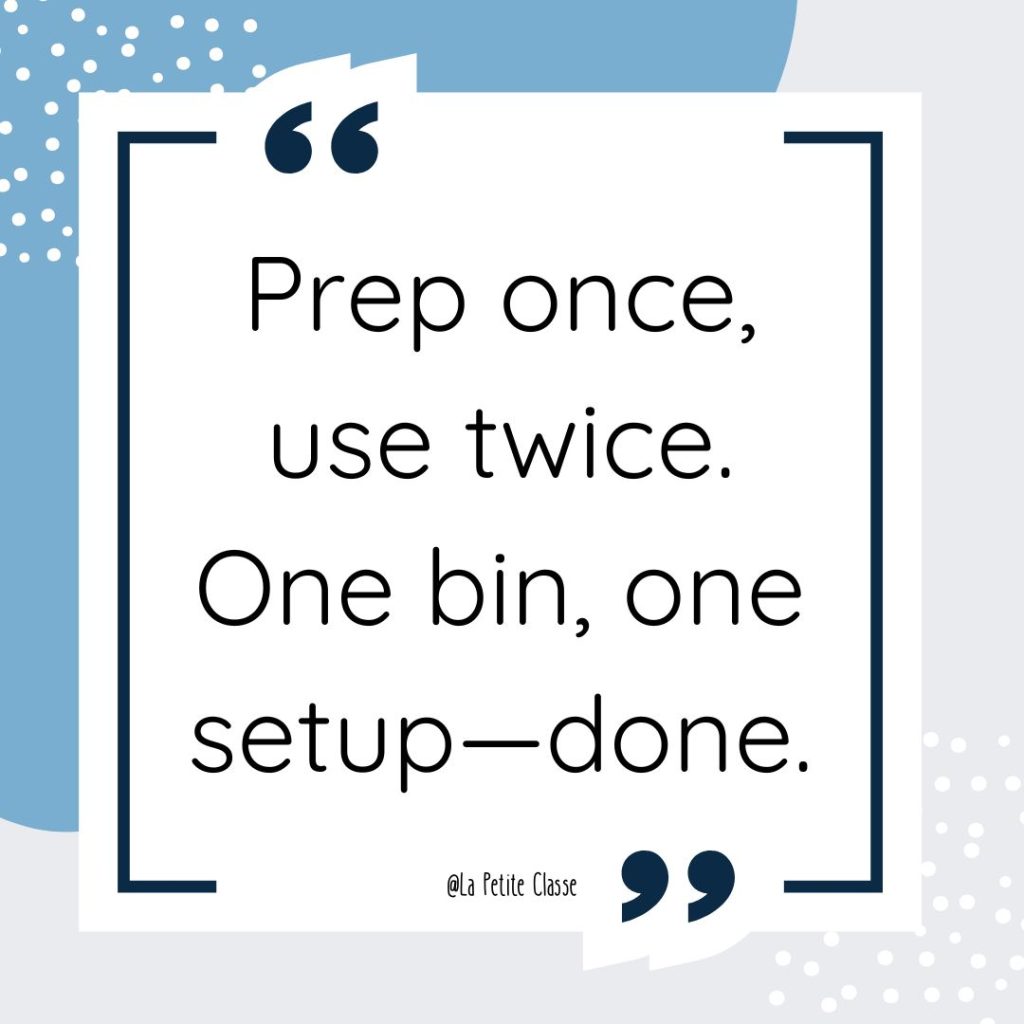 Instead of spending hours creating two separate versions of the same centre, look for resources that already include both languages. That way you can swap between English and French days without extra prep. One bin, one setup—done.
