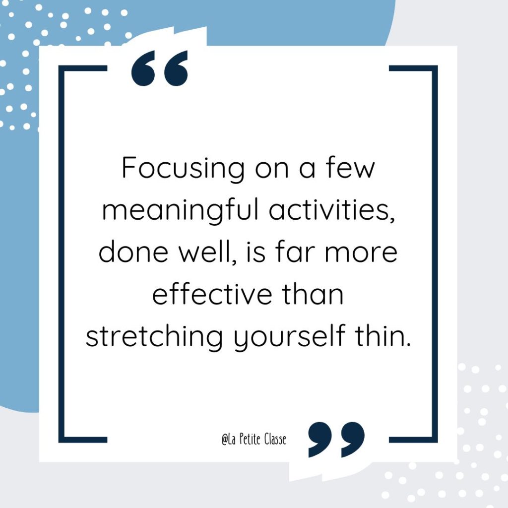 I’m reminding myself that focusing on a few meaningful activities, done well, is far more effective than stretching myself thin.